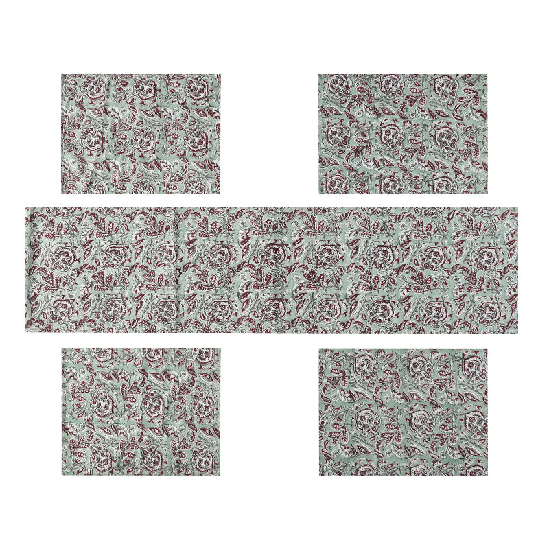 Enhance your dining experience with this elegant paisley table runner and placemat set, designed to bring a sophisticated vintage charm to your table. Featuring intricate paisley patterns in muted tones of green and burgundy, this set adds an exquisite touch to both modern and traditional interiors. A timeless design that elevates your dining space effortlessly. This handcrafted luxury table runner set is perfect for those who love elegant dining aesthetics with a touch of vintage charm.