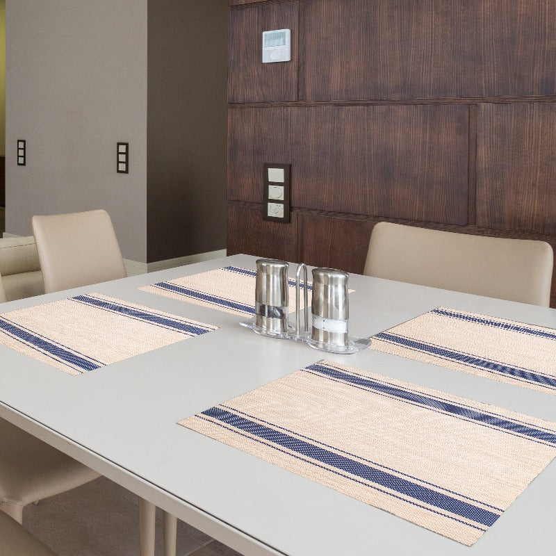 Bring home the Classic Blue Table Mats Set to enhance the look and feel of your dining table. Crafted with care, this minimalist set of table or placemat amps up the corner that brings friends and family together. The wipeable placemats protect your dining table from spills or stains. This dining table mat set complements while protecting the wooden base. It is a unique set of table mats moulded into a timeless design to suit all modern setups.