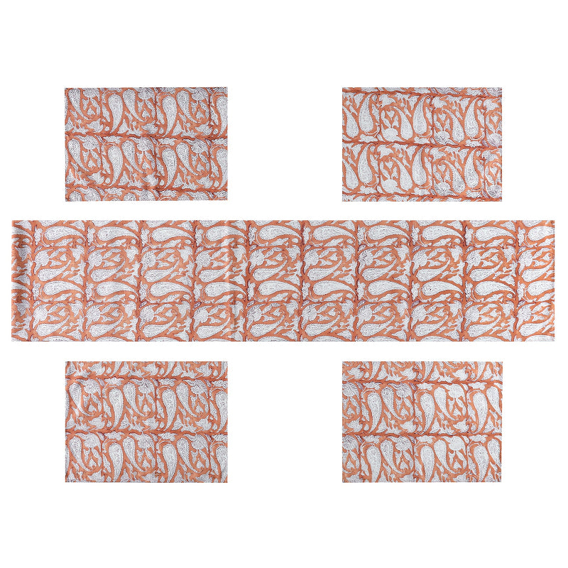 Elevate your dining experience with this sophisticated yet timeless table runner and placemat set. Featuring an exquisite earthy orange and white botanical design, this set seamlessly blends rustic warmth with refined aesthetics. Crafted for both casual and formal dining settings, this piece adds a refreshing touch of nature-inspired beauty to your table. Transform your dining table with this graceful and inviting table runner set that celebrates the charm of nature!