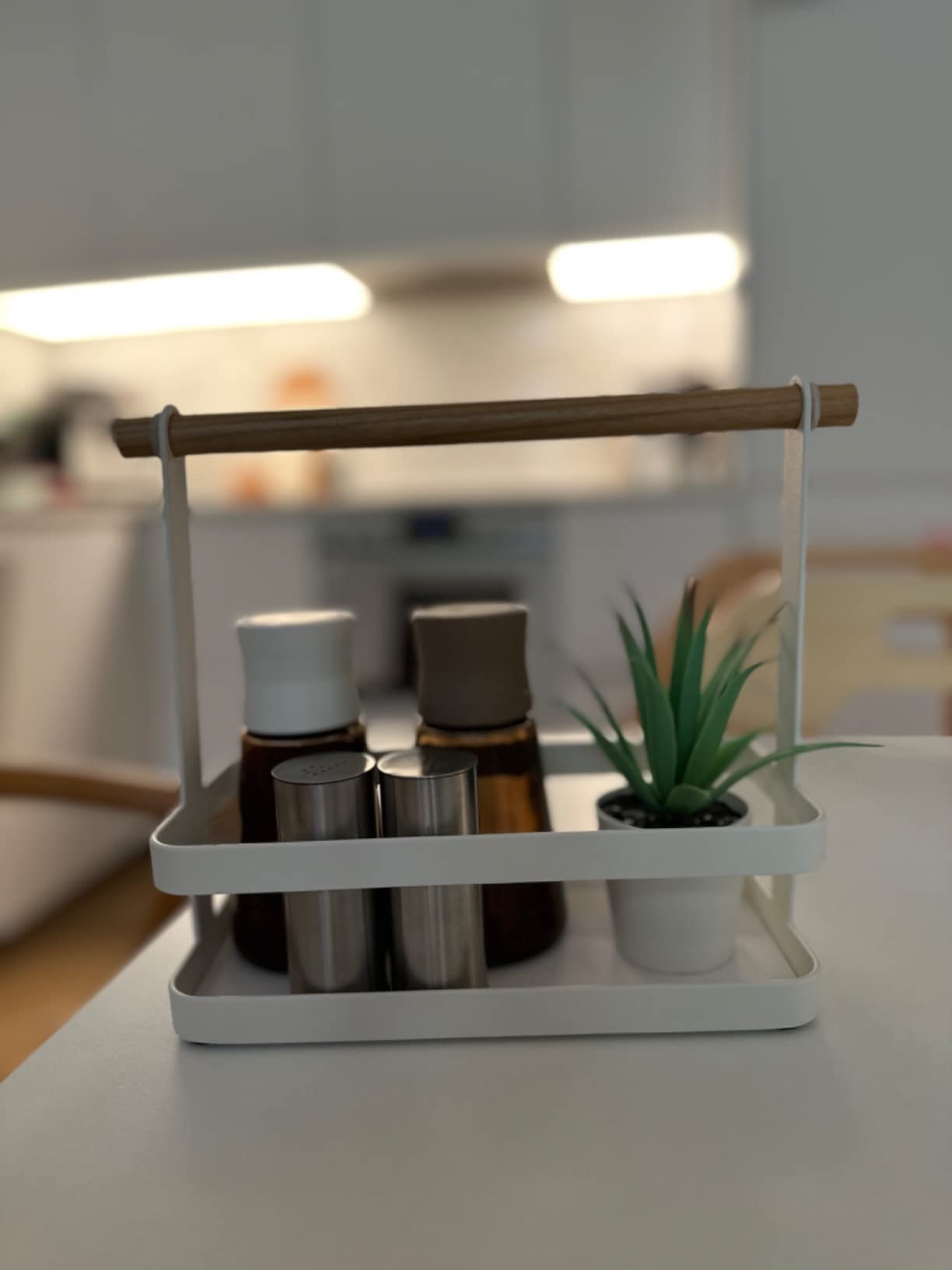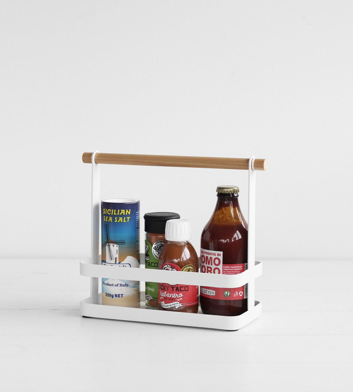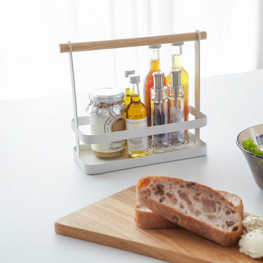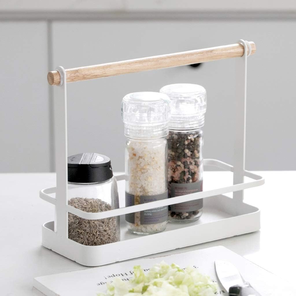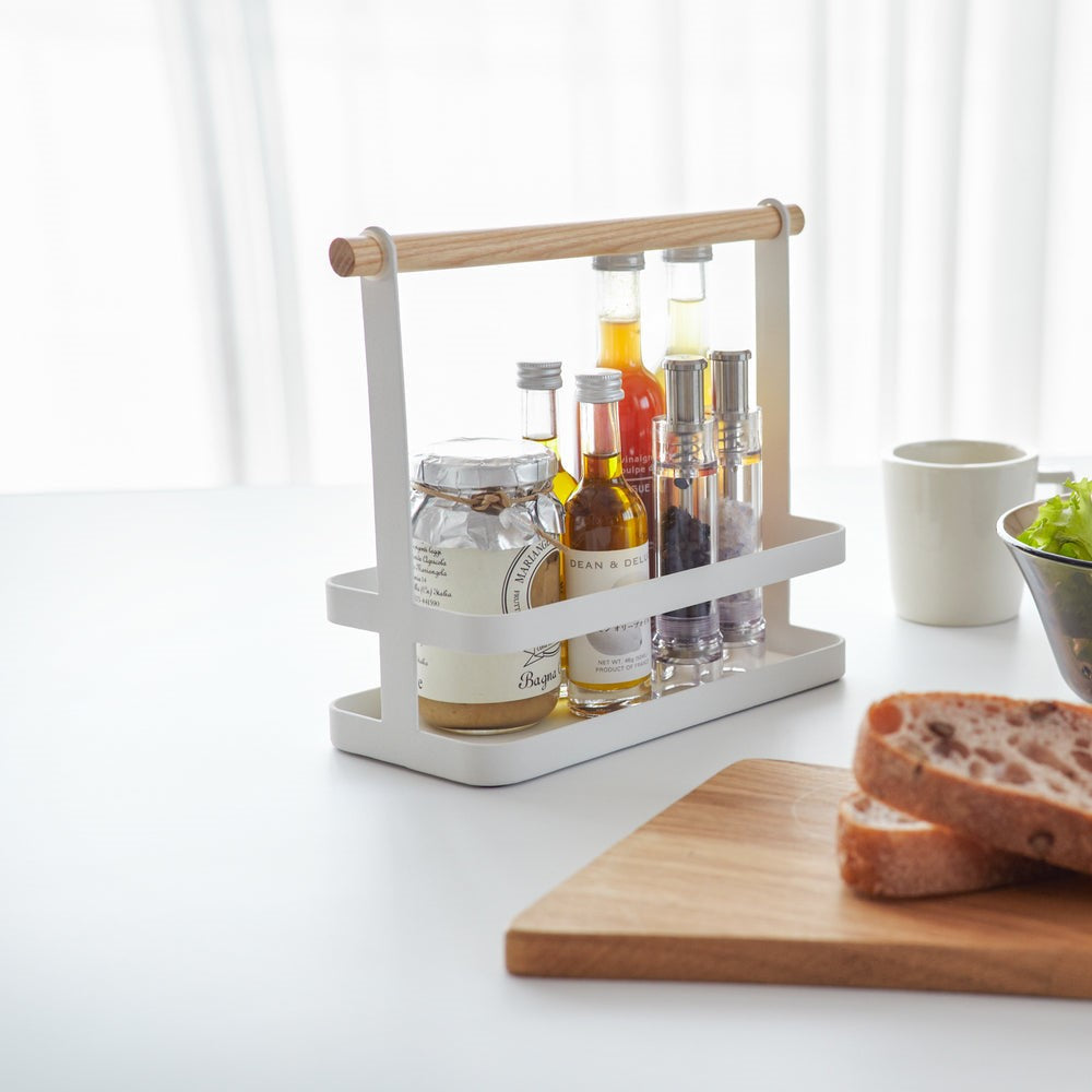 Keep your countertop organized and fun with this handy storage organizer. It looks good on any countertop and offers multiple storage options in a single design. Grab this handled spice caddy on your way to or from the dinner table. This simple spice rack can hold a variety of spices based on what’s for dinner. Use it for salad dressing or condiments to carry your favorite foods. You can also use this caddy in other rooms of the home, like on a bathroom countertop.