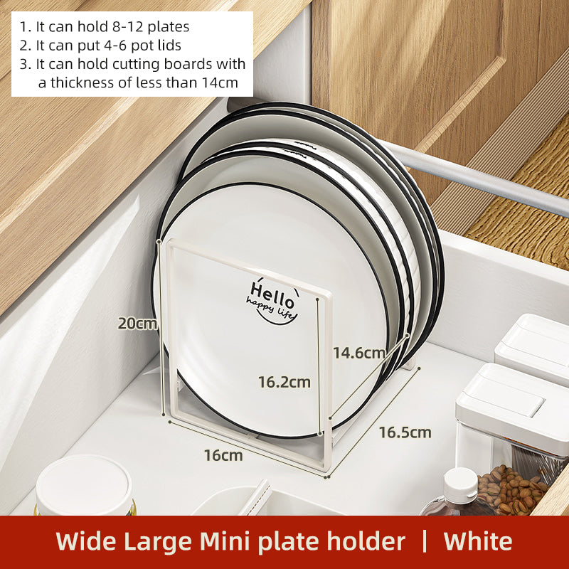 Tired of stacked plates causing a hassle? Stop the juggling and make your plates easily accessible with this plate stand. It protects plates from cracking and maximizes cabinet space. Classic and simple, it blends seamlessly with your kitchen or dining area decor. Store plates in sections, keeping them upright and ready for use whenever needed. A kitchen organizer like never before.