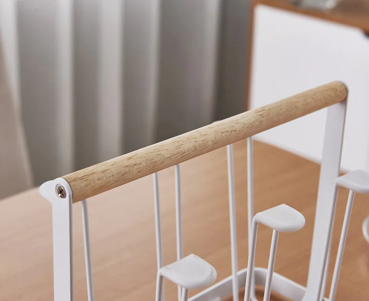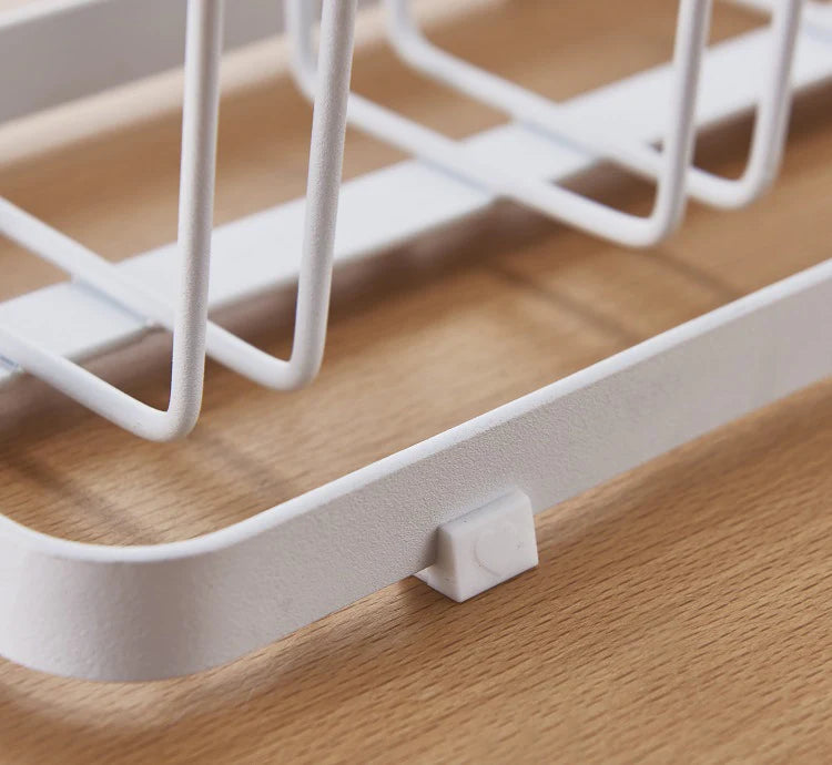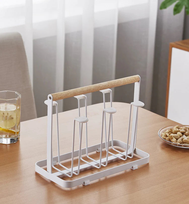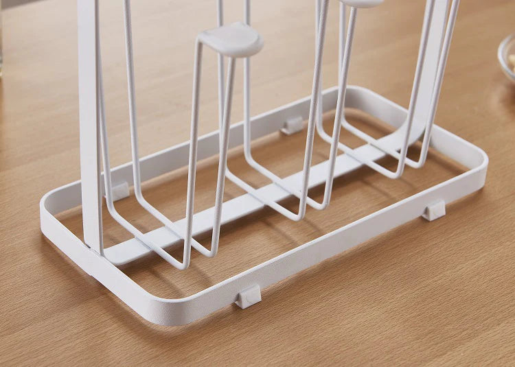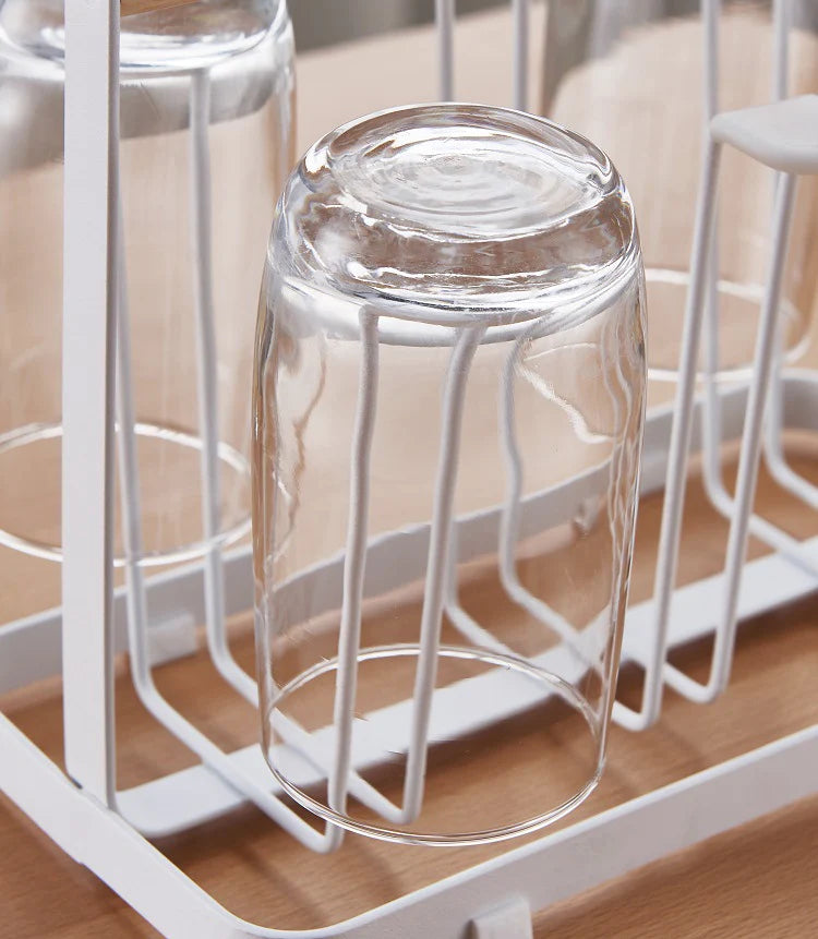 Tired of arranging glasses one by one in your cabinet? This glass stand offers a quick and easy solution. Use it to place all your glasses straight into your kitchen cabinet after drying. It doubles as a glass drying rack and storage unit, keeping your glasses safe from cracking. Its open frame design allows for water drainage, and its flexible structure ensures durability. It's a stylish and practical way to store or display your glasses when guests arrive.