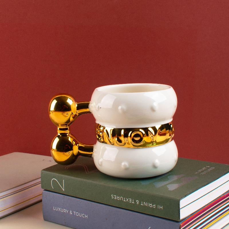 The perfect mug for sipping your morning joe in style. Made with high-quality ceramic and accented with luxurious gold details, this mug will elevate your daily caffeine routine. Indulge in a touch of luxury while getting your caffeine fix.