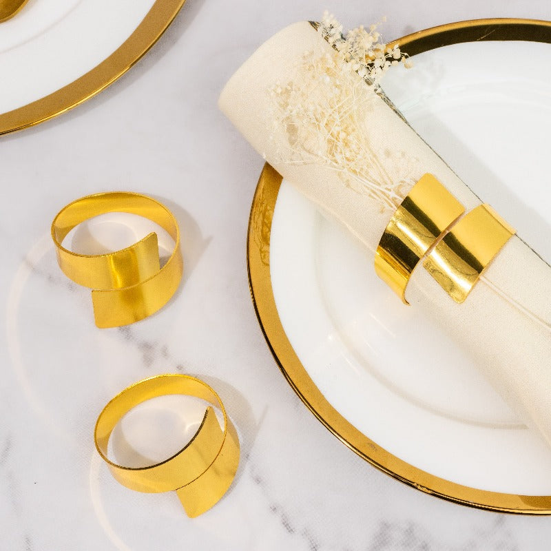 Made with fine craftsmanship these Urbane Gold Napkin Rings are perfect to enhance the look of your dining table. Place your napkin holder rings in different patterns and add a dash of class with these elegant napkin rings. They are carefully crafted to bring playfulness but with a twist of class to your tablescape. These cloth napkin rings are perfect for a big family dinner.
