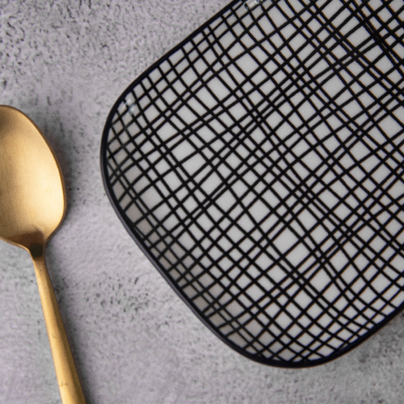 Ace your starter or snack game with this aesthetic Seamless Pattern Rectangle Snack Plate (Set of 6). The bold black edge and monochromatic pattern of this plate can woo your guests in just a moment. Whether you are ordering in, having a huge party or a gathering of a few people, this starter plate is perfect for every event. This is made of ceramic that guarantees its longevity. Serve snacks such as fries, chips, nachos, fritters and more in this serving dish. This serving dish with a trendy look can instantly enhance the look of your tableware or serve ware collection.